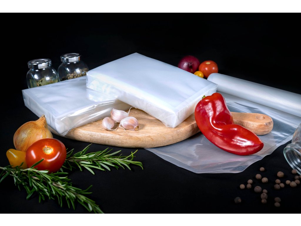 Vroubkované sáčky pro vakuové stroje a baličky: Maxxo, Silvercrest, Lavezzini, ETA, Status, Catler, Sencor, Proficook, Food Saver, Lund, Hendi, Caso, Severin, Stalgast, Bartscher, Clatronic, Zepter. Mají hluboký reliéfní vzor navržený pro pohodlnější a rychlejší odsávání vzduchu. Správně zvolená výrobní technologie, složení surovin a kontrolovaný výrobní proces zajišťují trvanlivé a pevné svary a velmi dobrou ochranu balených výrobků.